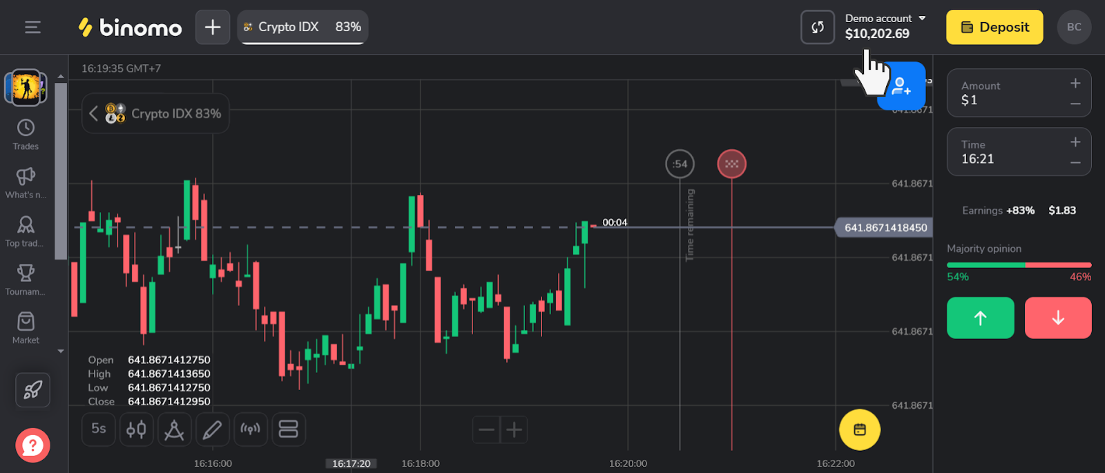 Kripya dhyan dein, demo account ke saath trade ki sankhya aapke pehle deposit karne se pehle 30 tak seemit hai. Uske baad yeh aseemit ho jaati hai.