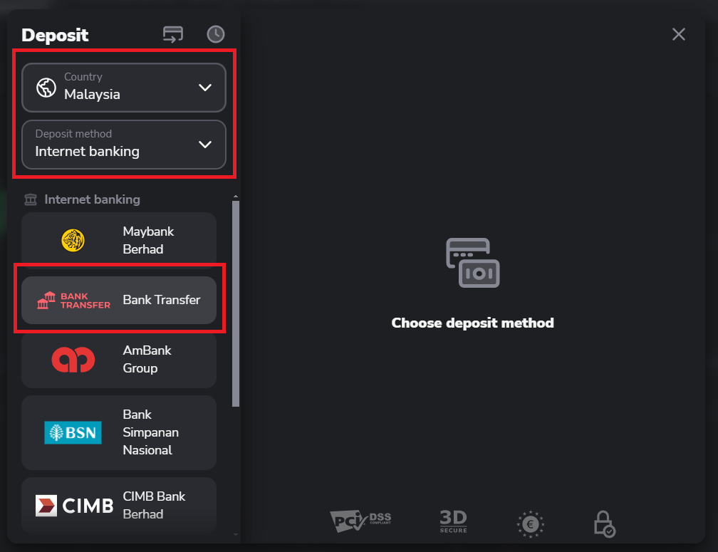 3. You can make a deposit via any of the suggested banks. Choose a bank and click “Submit”.
