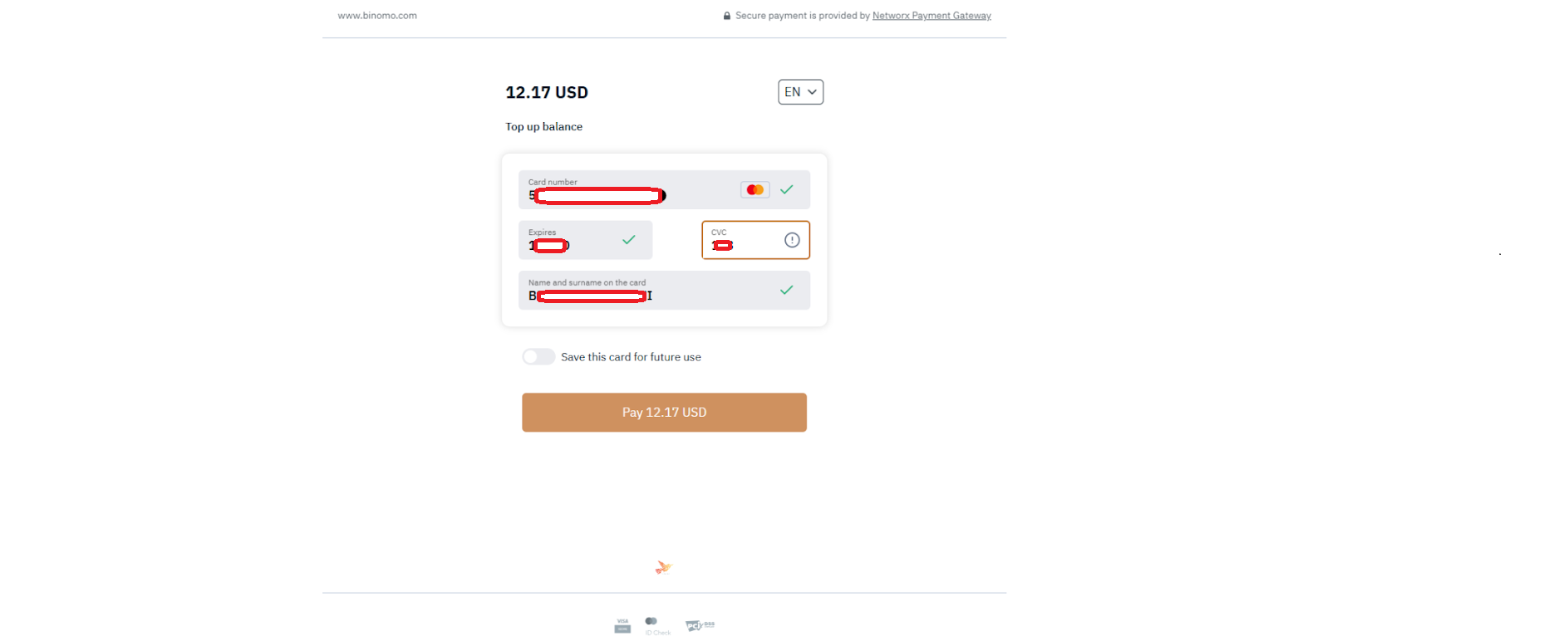 Step 5 – On the next page, input your card details and click the “Pay 12.17 USD” button.