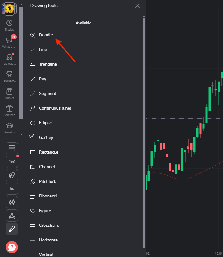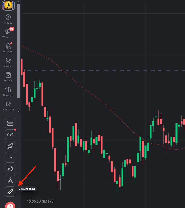 Drawing tools help you discover trends and pivot points in the market. These tools allow you to draw and customize indicators and figures on a chart. Please note that drawing tools are only available in the web version of the platform.
