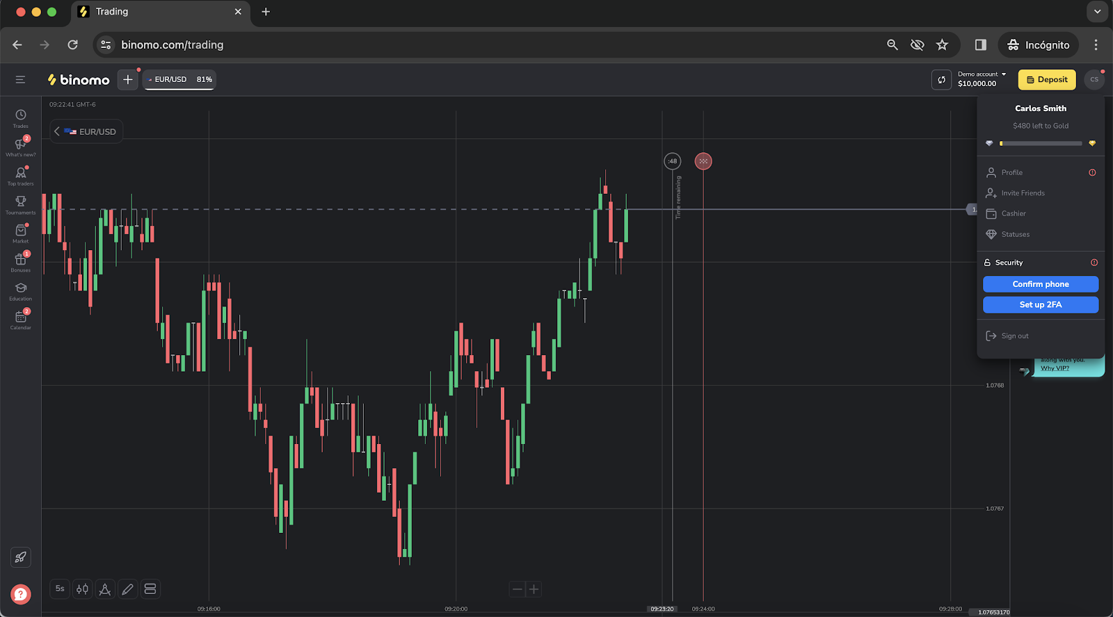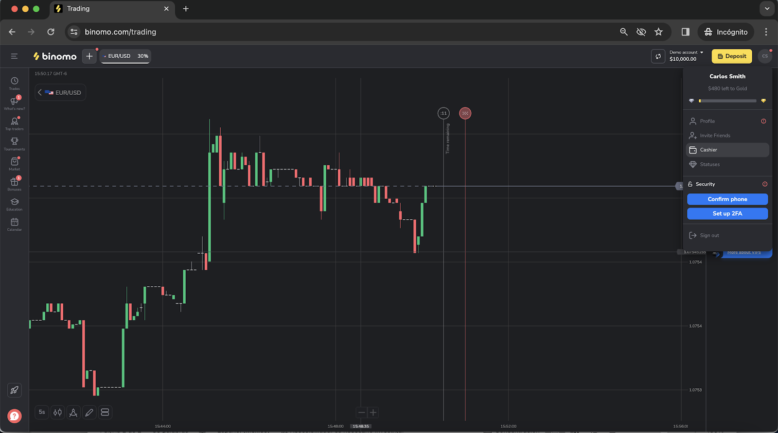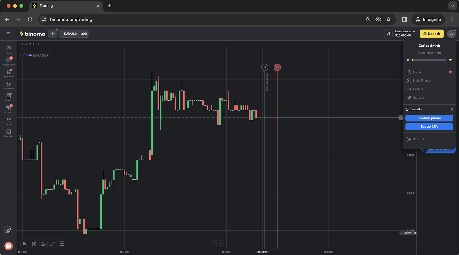 - On the Trade room, click on the profile icon located on the upper right corner to show your profile information.