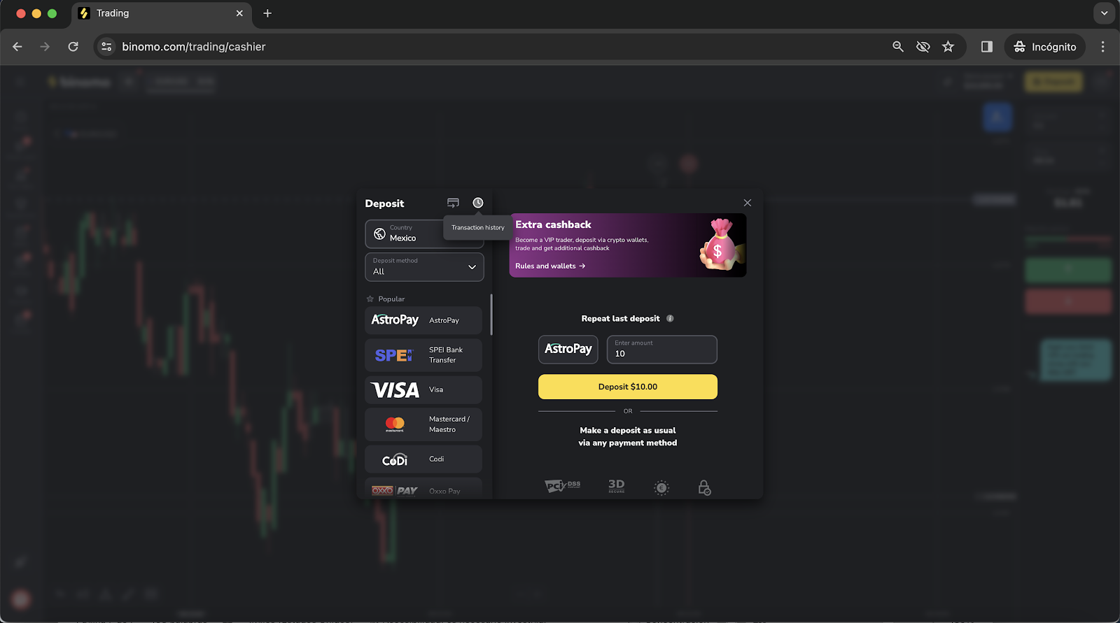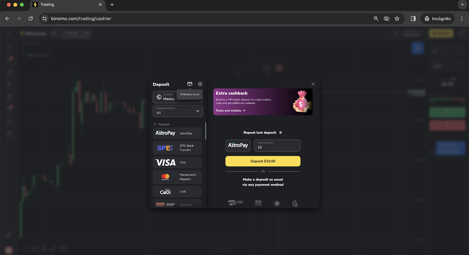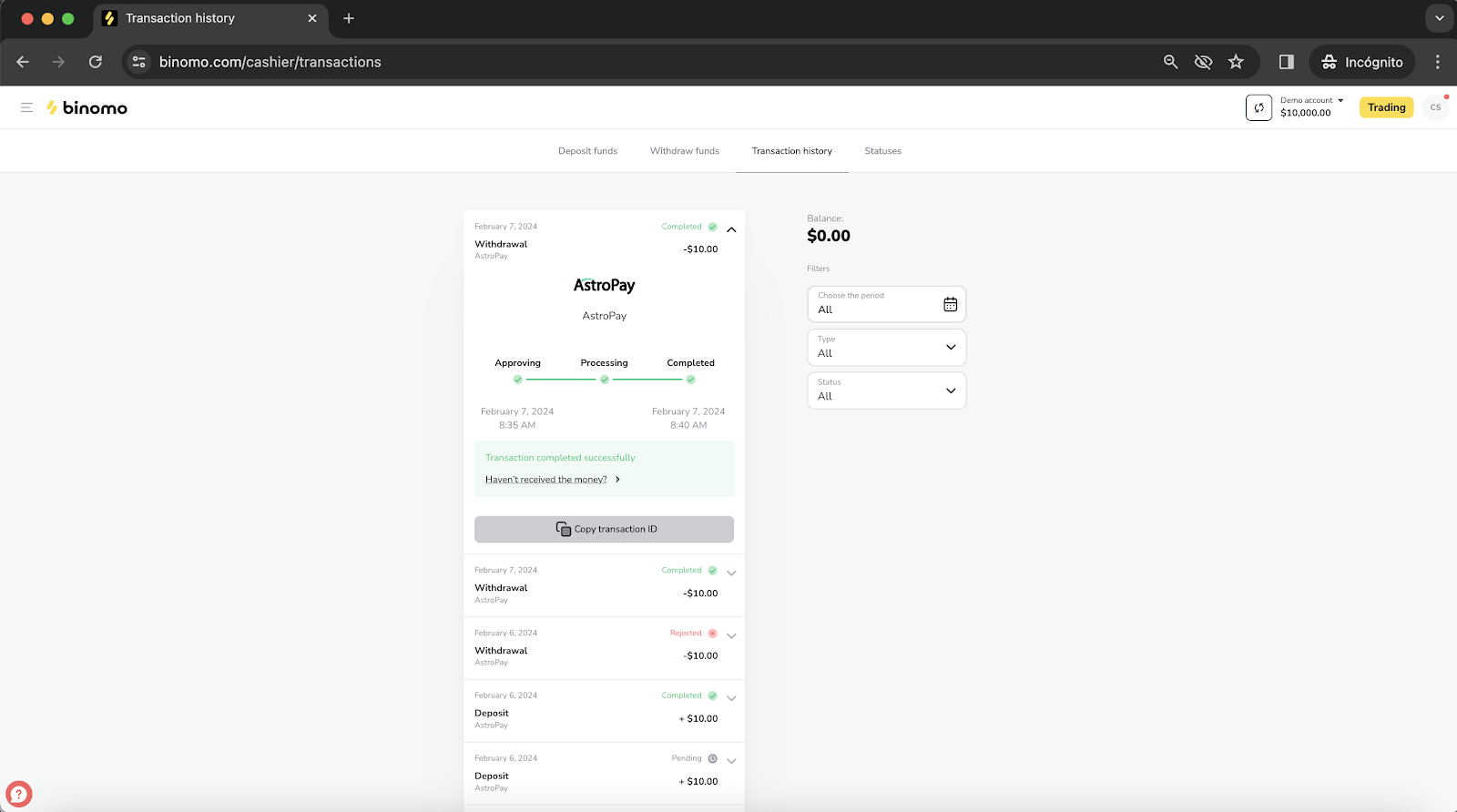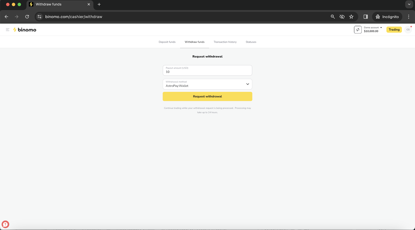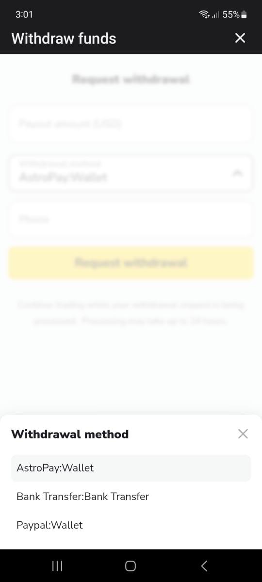 - Select “Astropay” from the Withdrawal method on the dropdown menu