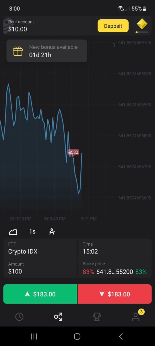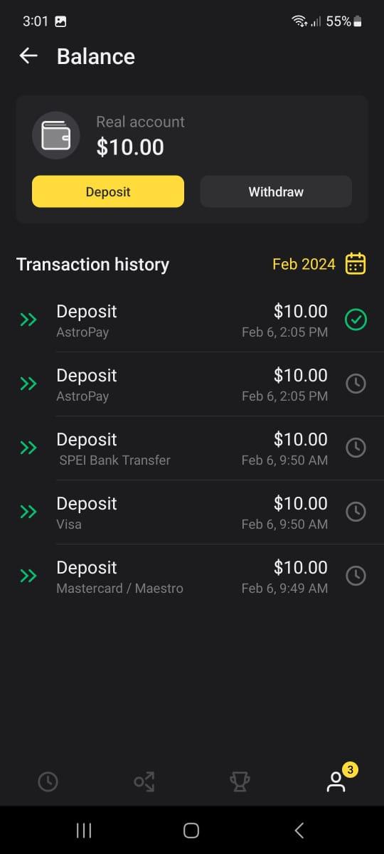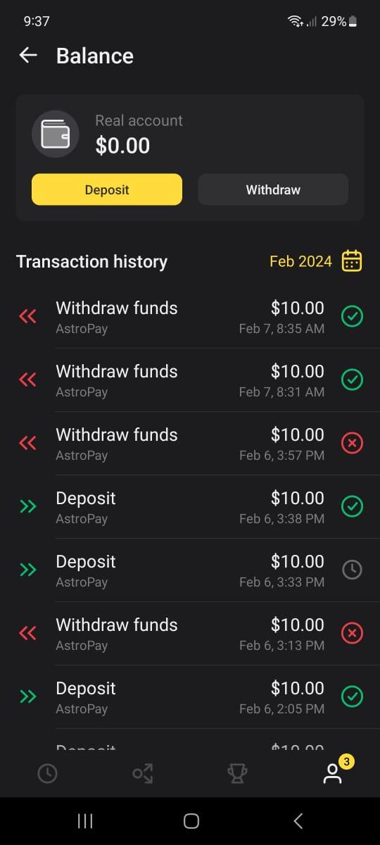 - To check the withdraw status, click on the profile icon on the Trade room and click on the wallet icon.