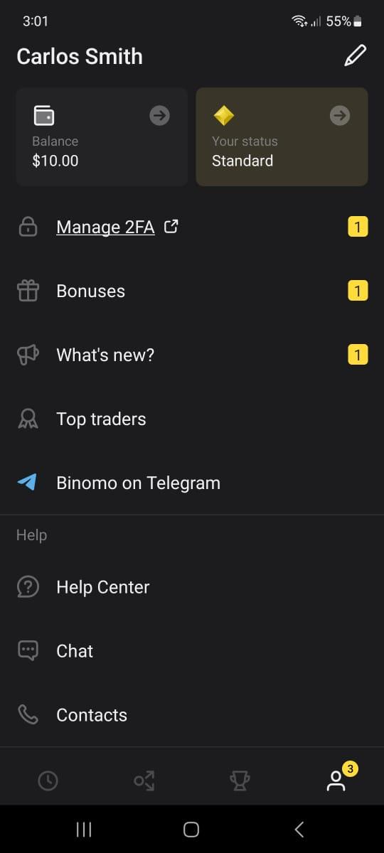 - On the trade room, click on the profile icon on the right corner at the bottom of the screen.