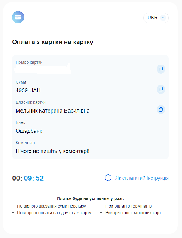 3. Transfer the payment using the payment details in the box