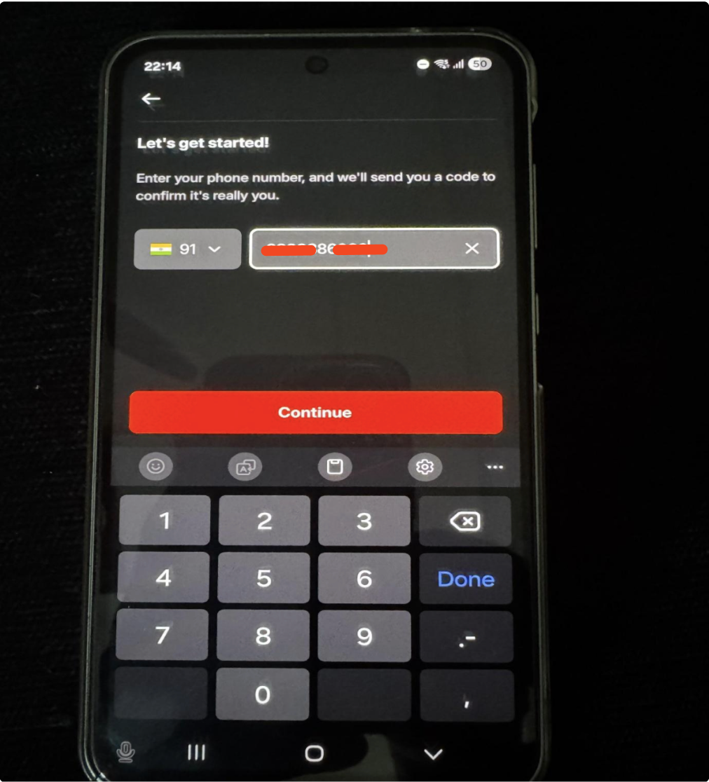 2. On the launcher screen Click on “I already have an account” button and make sure user able to see “Let’s get started!” and enter the mobile number and click on “Continue” button: