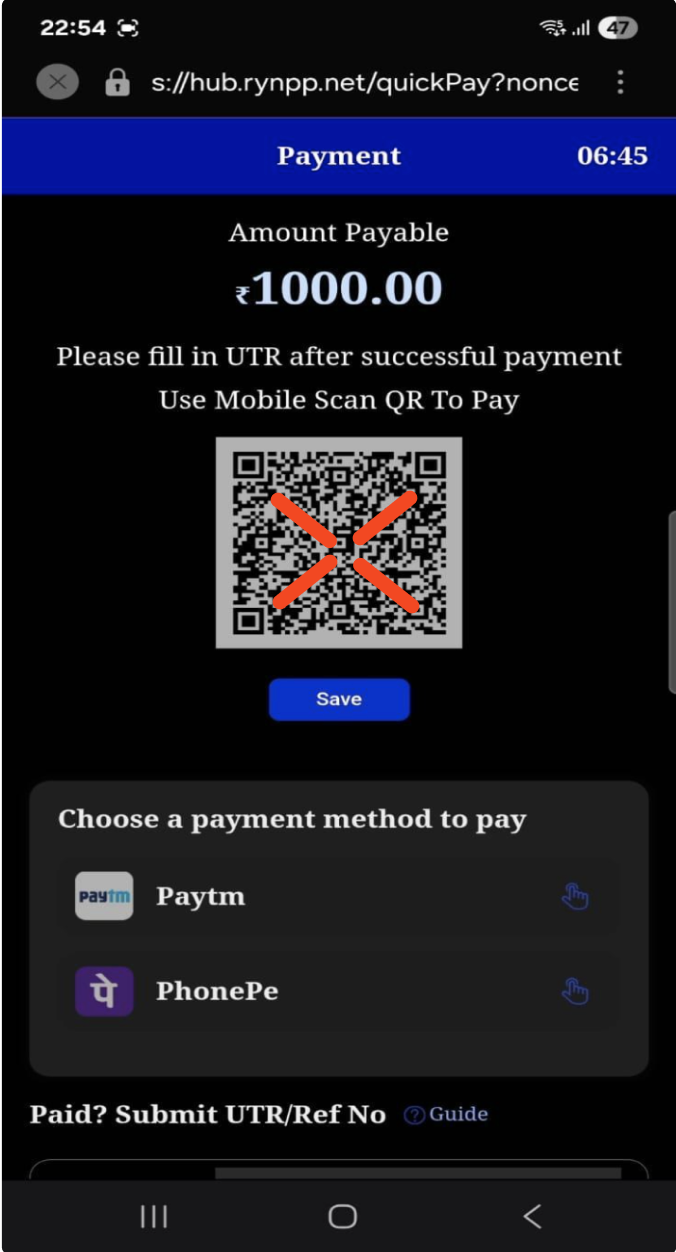 13. Once payment done enter the transaction reference number in “UTR” field and click on “Submit UTR/Ref No” button: