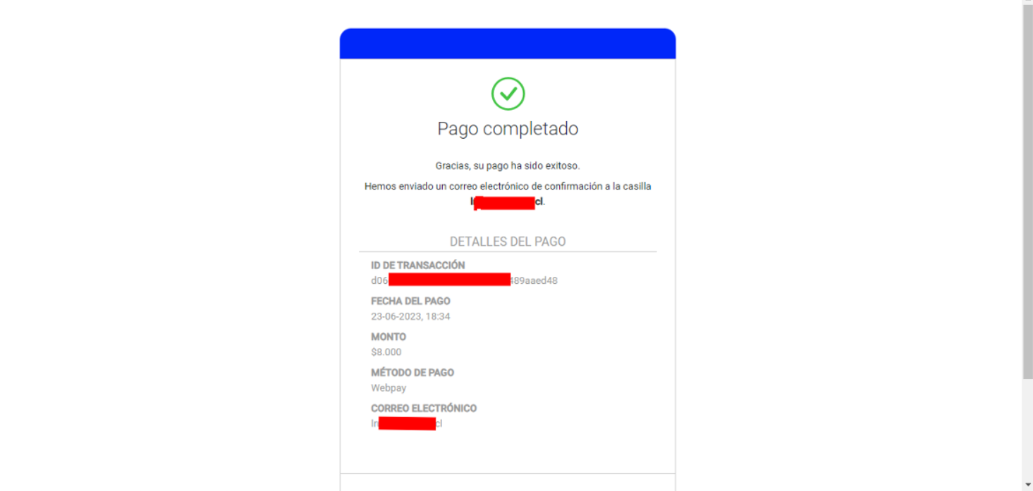 Paso 6: Una vez realizado el pago con cualquier método Webpay se mostrará el comprobante.
