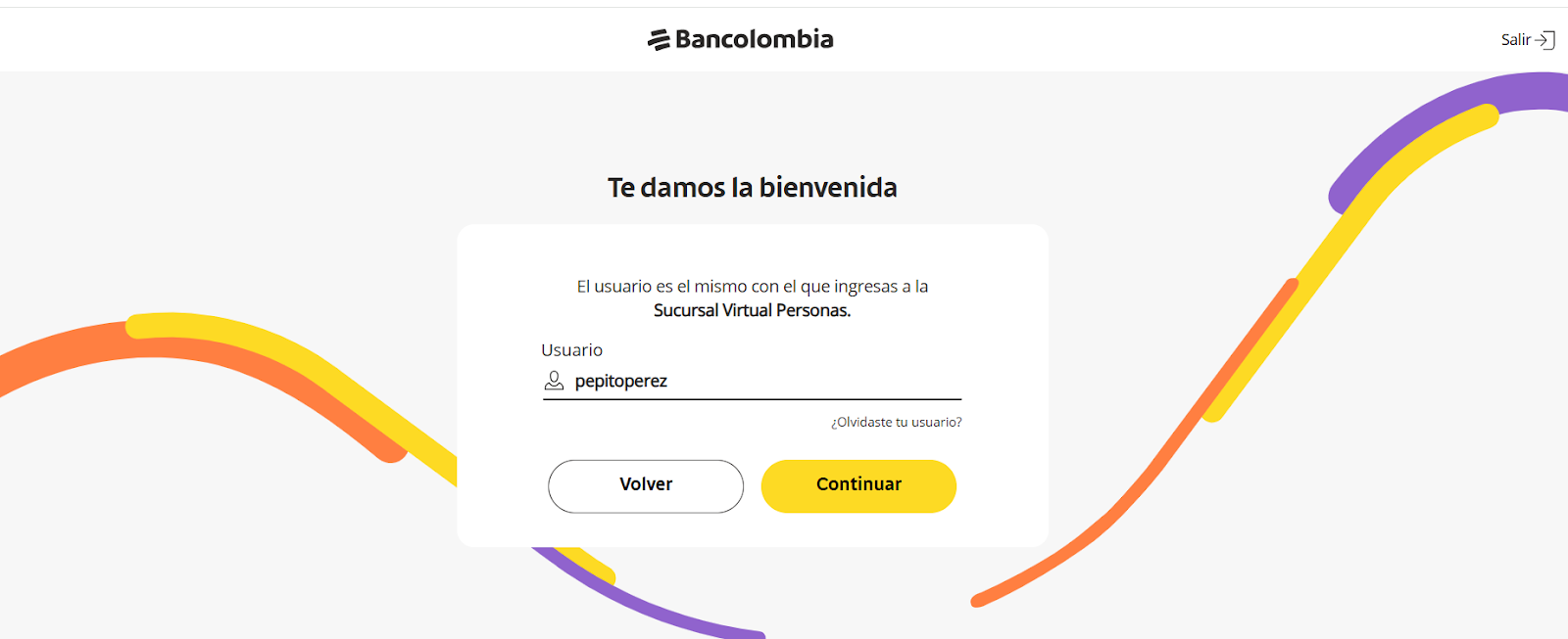 Paso 8: Ingrese su usuario del banco y haga clic en “Continuar”.