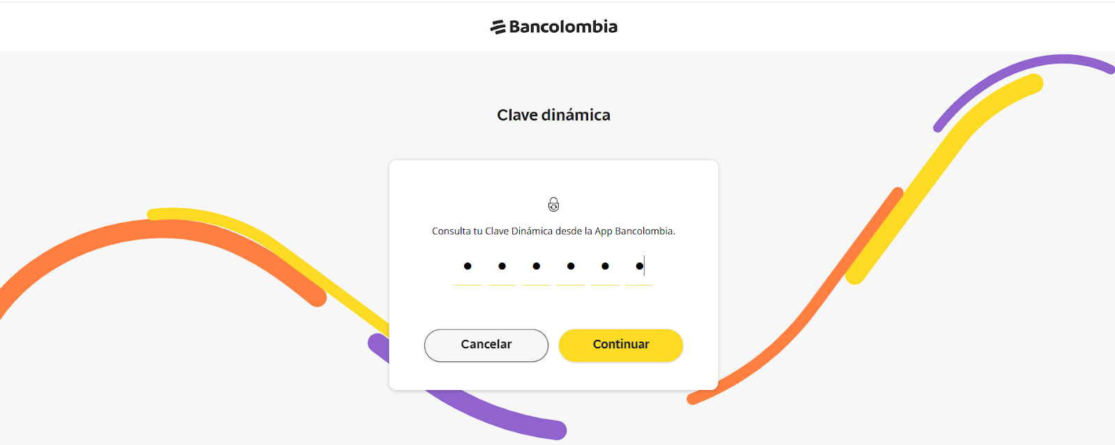 Paso 10: Ingrese la clave dinámica generada en la aplicación de su banco y haga clic en “Continuar”.