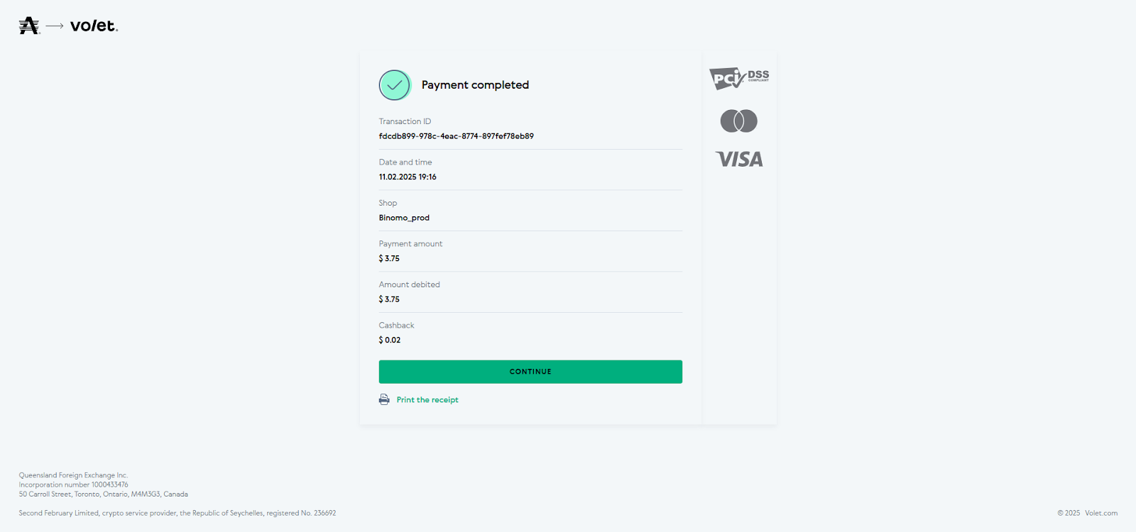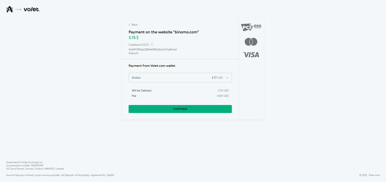 PASO 5: Será redirigido a una página de Volet, donde se mostrará el saldo a pagar. Haga clic en el botón "Go to payment".