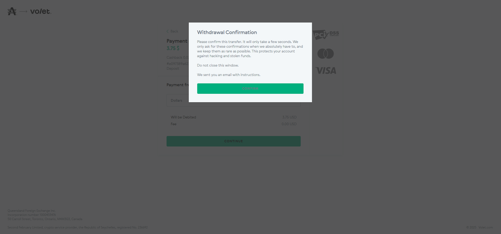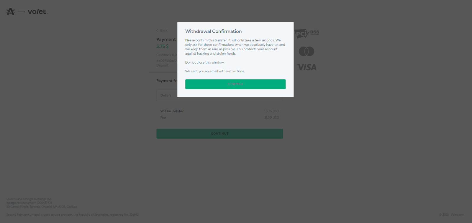 PASO 8: Ingrese a su correo electrónico asociado a la cuenta de Volet y haga clic en el botón "Confirmar" dentro del correo.