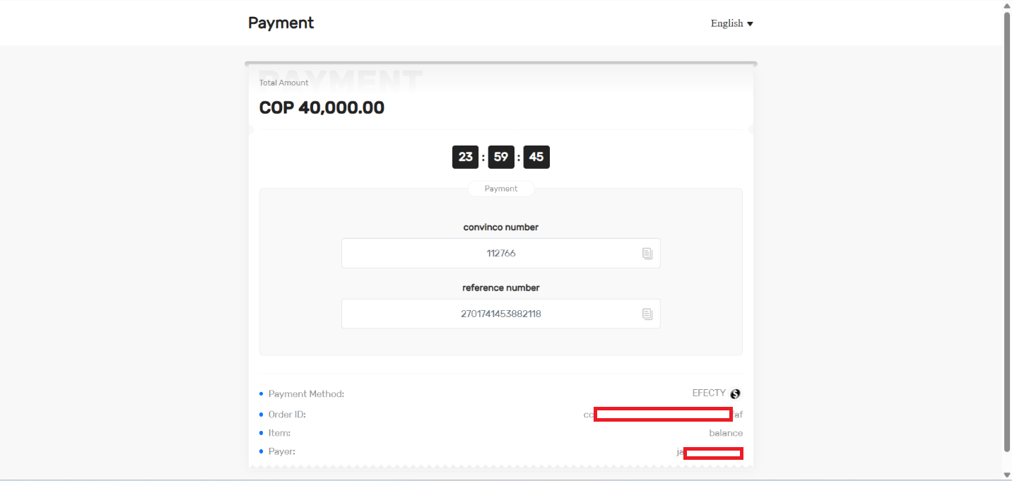 Paso 5: Será redireccionado a una página donde se mostrarán el número de comercio y la referencia de pago. Tome nota de estos datos y diríjase a una oficina de Efecty con el dinero en efectivo para realizar el pago.