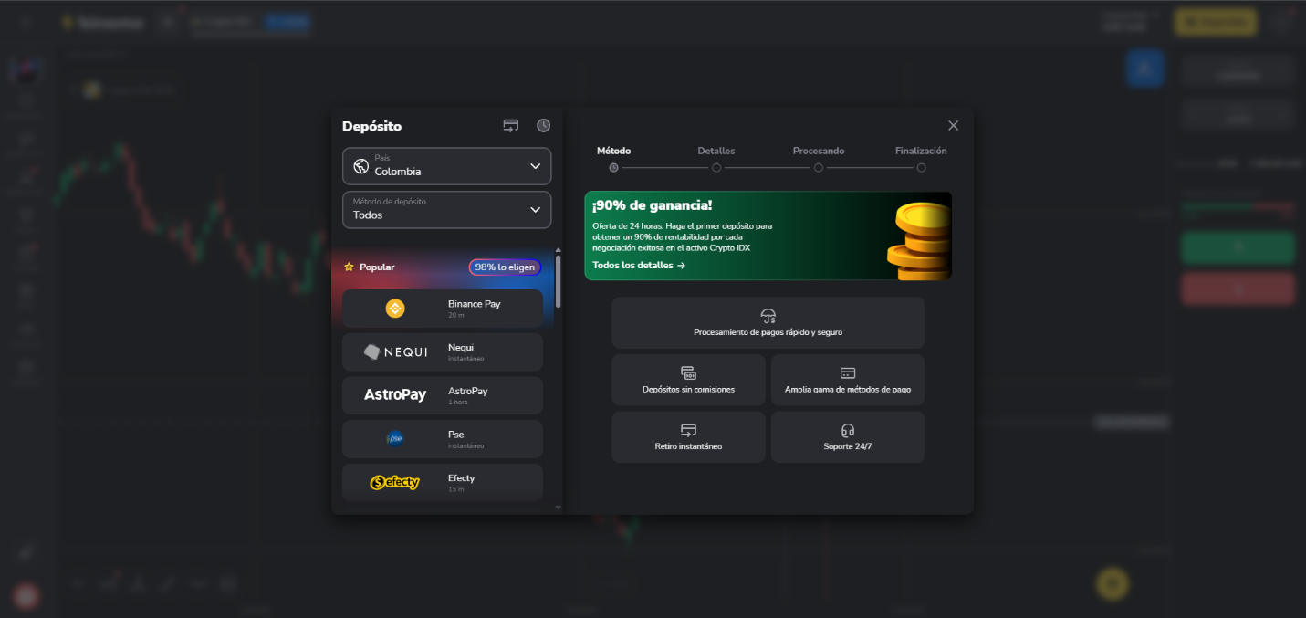 Cómo realizar depósitos en su cuenta de Binomo a través de Efecty en Colombia