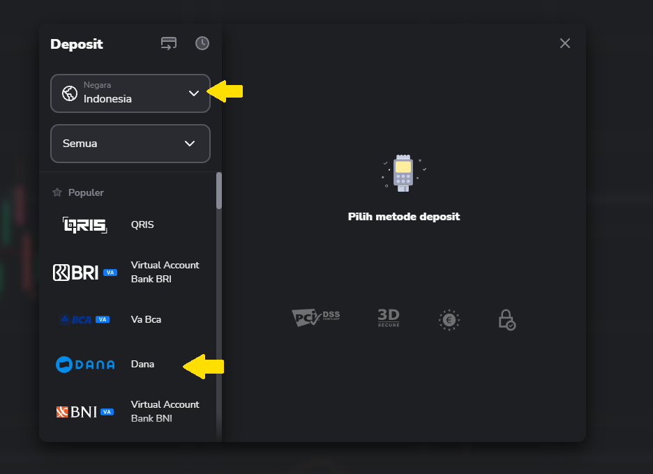 2. Pilih Indonesia dalam kolom “Negara” dan pilih “DANA”