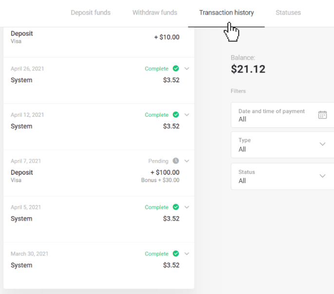 Dalam kasus pertama, periksa status deposit Anda di kolom “Riwayat transaksi”.