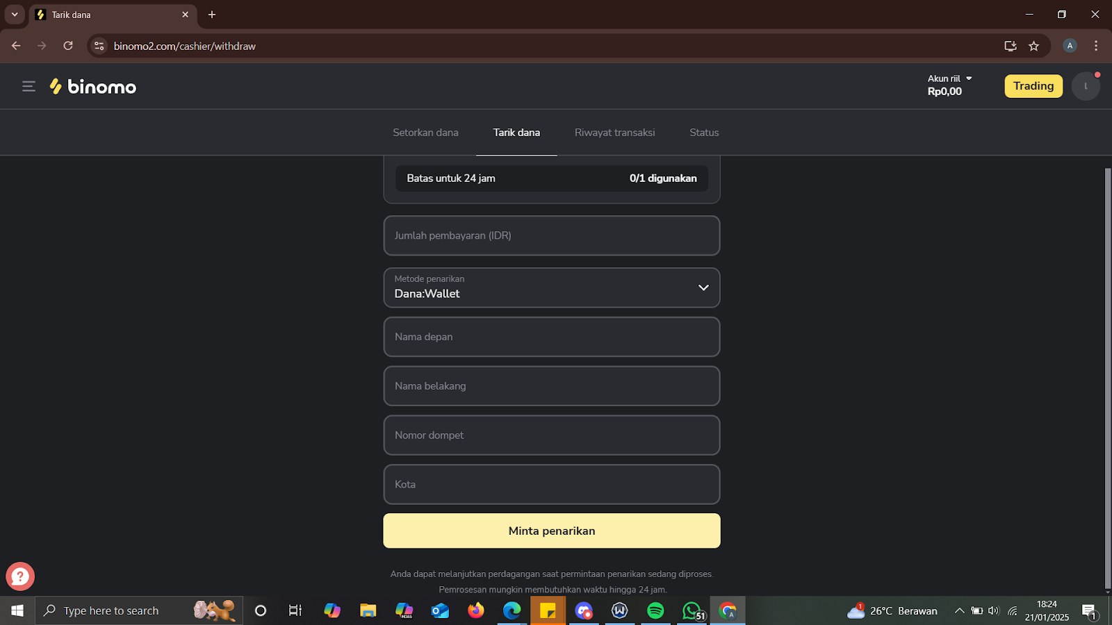 - Setelah memastikan semua data telah diisi dengan benar, klik tombol “Minta Penarikan” untuk mengajukan permintaan penarikan dana.