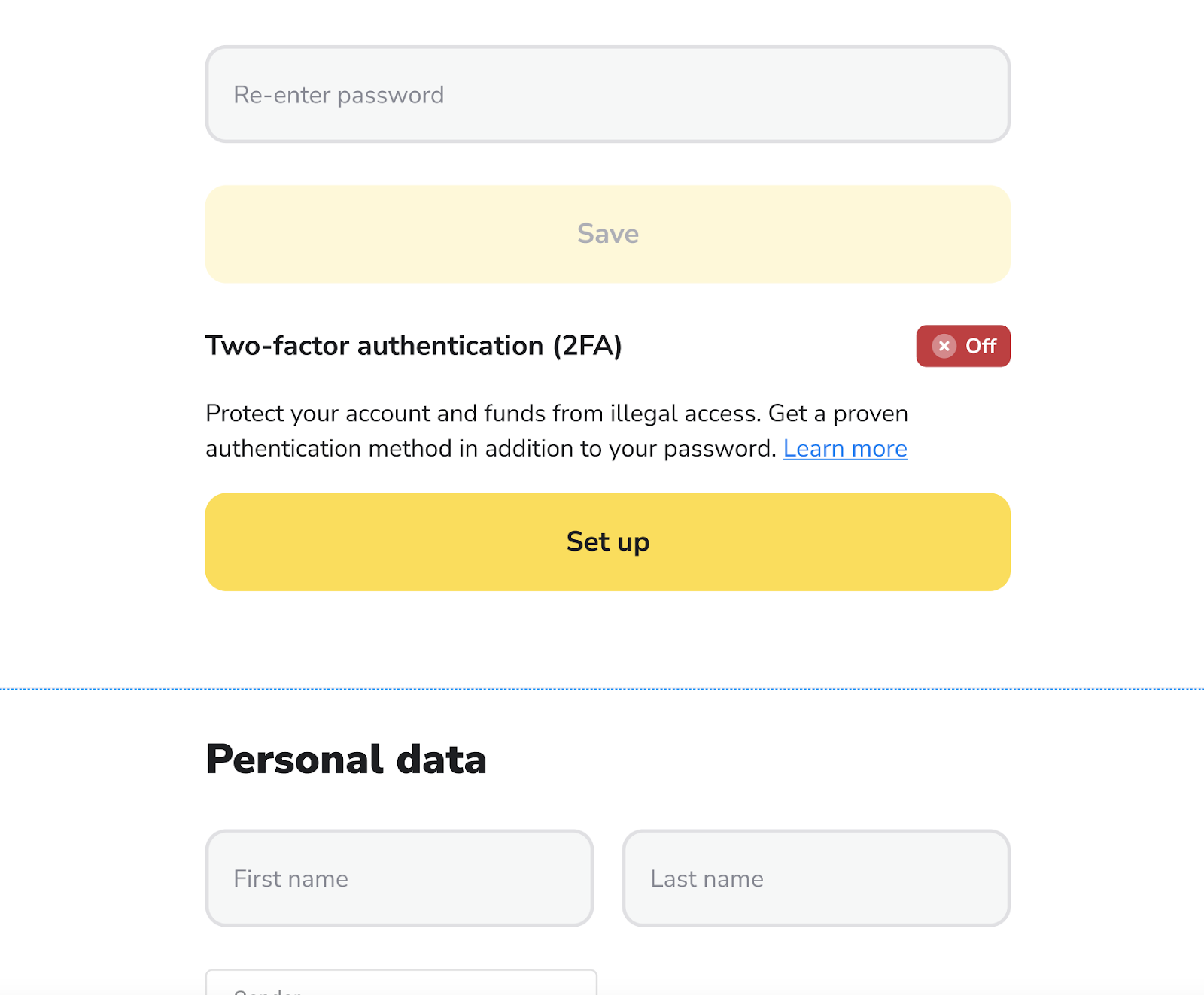 ! Hesap korumanızı önemli ölçüde azaltacağı ve verilerinizi ve fonlarınızı daha savunmasız hale getireceği için 2FA'yı kapatmanızı önermiyoruz.