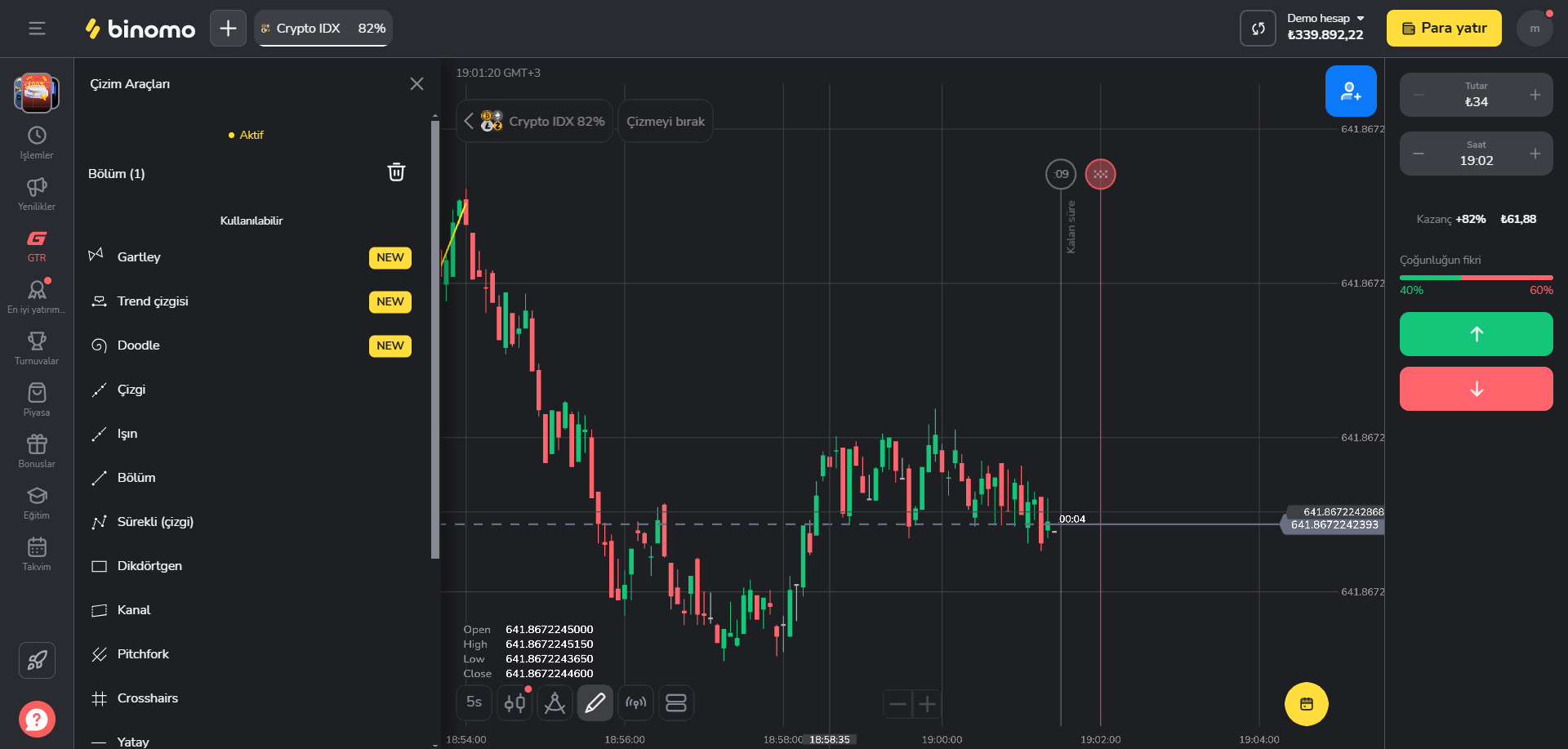 Çizim araçları, piyasadaki trendleri ve pivot noktalarını keşfetmenize yardımcı olur. Bu araçlar grafik üzerinde şekiller çizmenize ve göstergeleri özelleştirmenize olanak tanır. Lütfen çizim araçlarının yalnızca platformun web sürümünde mevcut olduğunu unutmayın.
