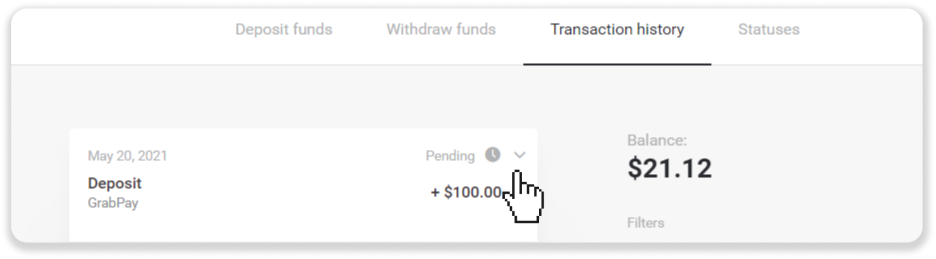 Trong trường hợp đầu tiên, hãy kiểm tra trạng thái nạp tiền trong “Lịch sử giao dịch”.